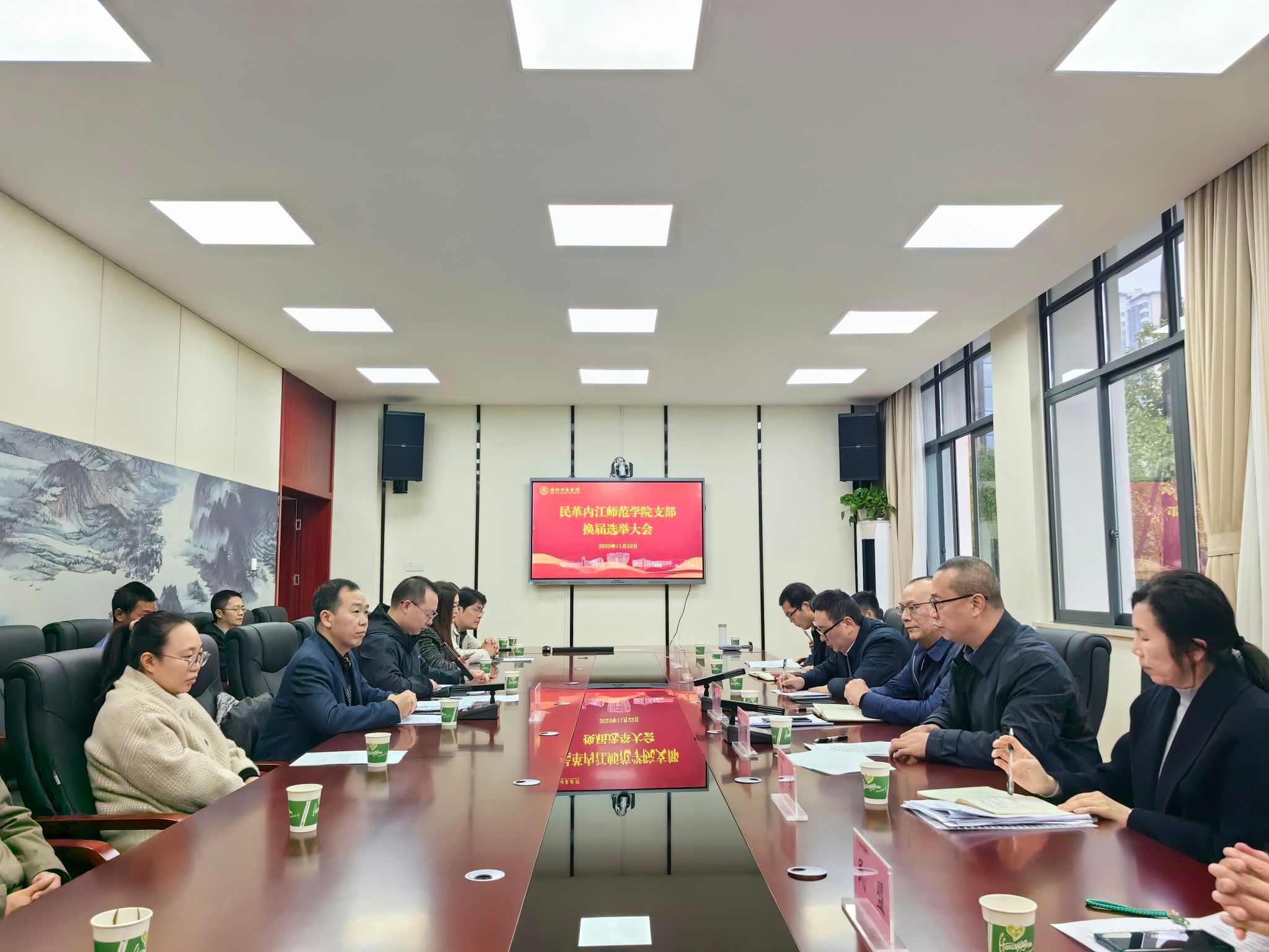 11月22日下午,民革师院支部换届选举大会在学校行知楼B101顺利召开。民革内江市委专职副主委廖洪,内江职业技术学院副院长、民革内江市委副主委方飞,内江师范学院党委常委、宣传部部长、统战部部长陈湘,民革内江市委秘书长李英,内江师范学院统战部全体成员,内江师范学院各民主党派代表,民革内江市各总支、支部代表,民革师院支部全体党员同志参加会议。