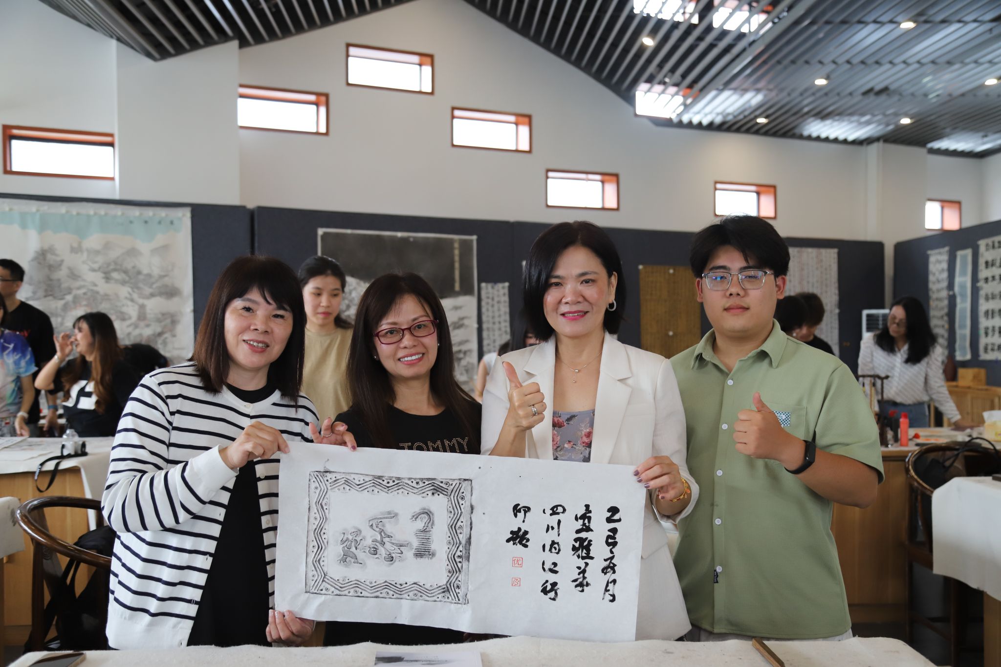 2025年7月8日,内江师范学院迎来了“同根同源·关怀同行”2025 大千文化教育实践共研共创交流活动的台北市教育关怀促进会参访团一行人,他们参观了内江师范学院校史馆,在中华优秀传统书画文化研究院体验了传统书画创作。参访团成员在书画研究院老师的指导下亲手执笔,体验水墨丹青的韵味,并在交流中共同完成了一幅幅象征两岸情谊的写意作品。双方一致认为,此次活动进一步深化了川台两地在文化与教育领域的互动,为未来持续开展合作奠定了坚实基础。