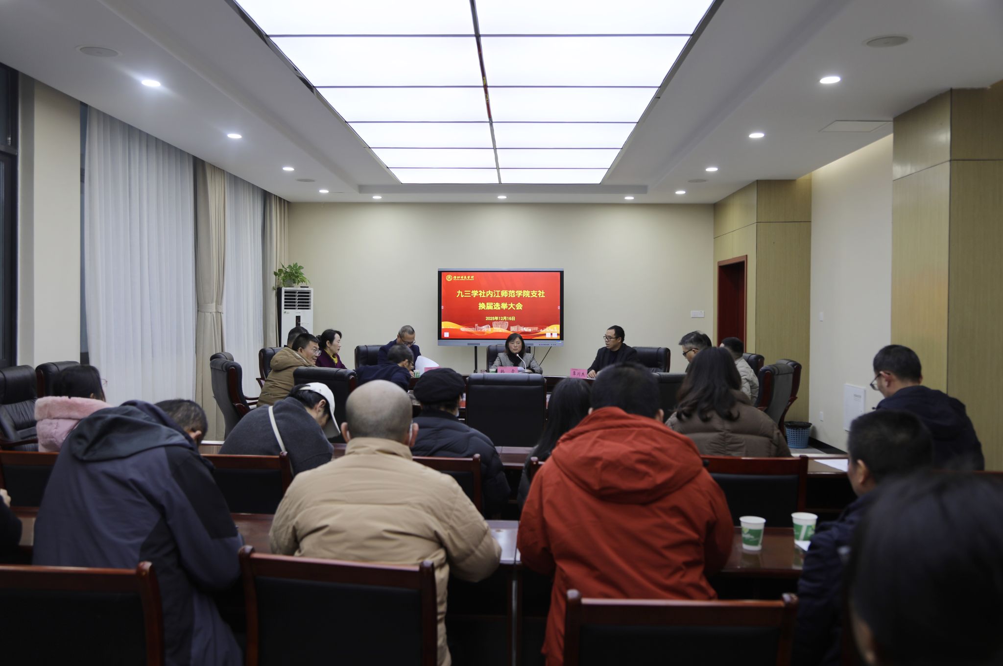 12月16日,九三学社内江师范学院支社换届选举大会在学校行知楼B206顺利召开。九三学社内江市委副主委韩霞,学校党委常委、宣传部部长、统战部部长陈湘出席会议。