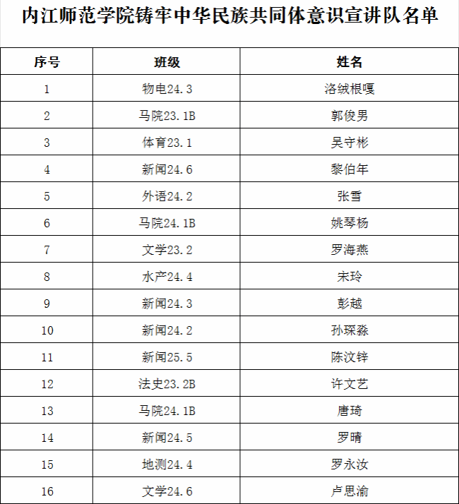 内江师范学院铸牢中华民族共同体意识宣讲队名单