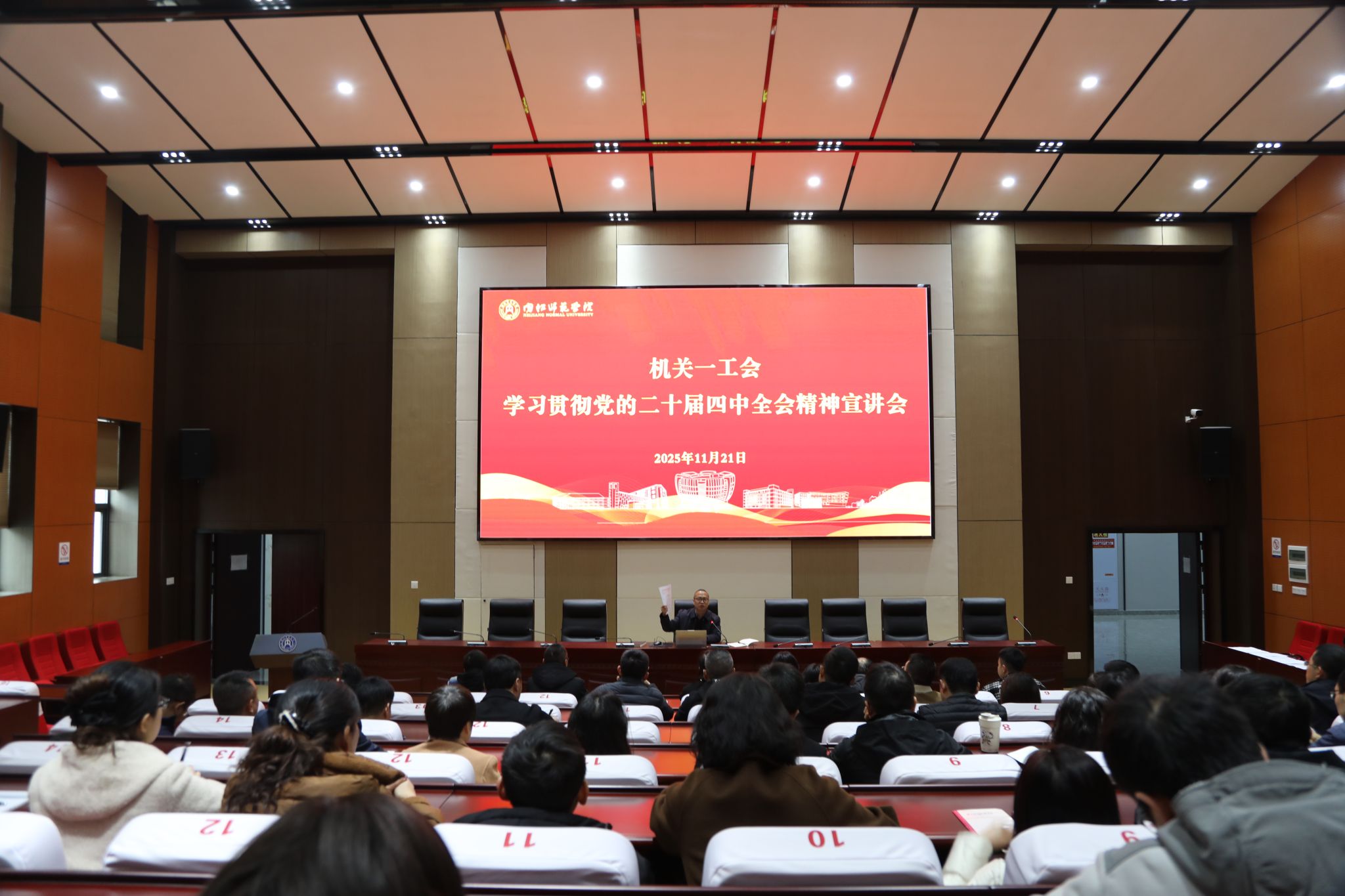 为深入学习贯彻党的二十届四中全会精神,引导全体会员准确把握全会的重大意义、丰富内涵和实践要求,11月21日下午,机关一工会在行知楼B104会议室成功举办了党的二十届四中全会精神宣讲专题讲座。机关一工会全体会员参加了学习。